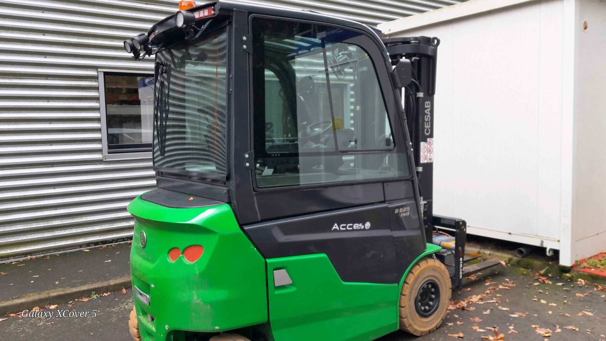 Batterie, Chargeur de batterie, Positionneur de fourches, Mini levier, Pare brise avant, Pare brise arrière, Toit couvert, Retroviseur panoramique