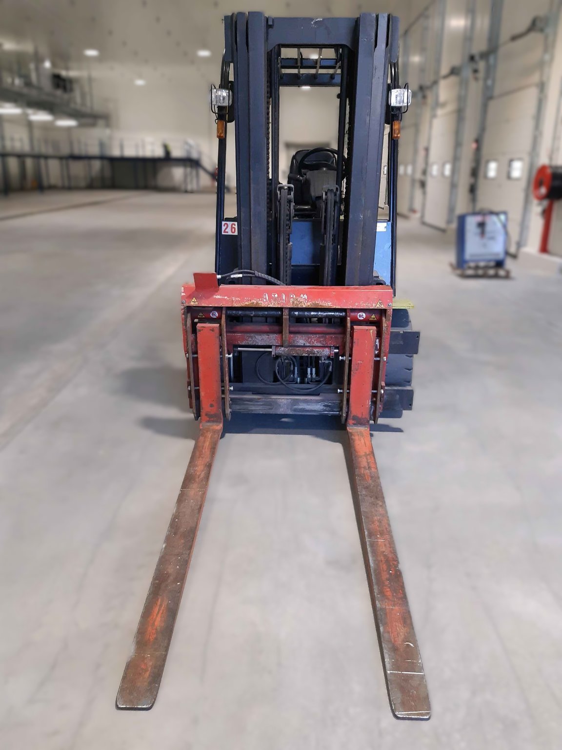 4 voies hydrauliques, TDL (déplacement latéral), Batterie, Chargeur de batterie, Positionneur hydraulique, Dosserêt d'appui de charge
