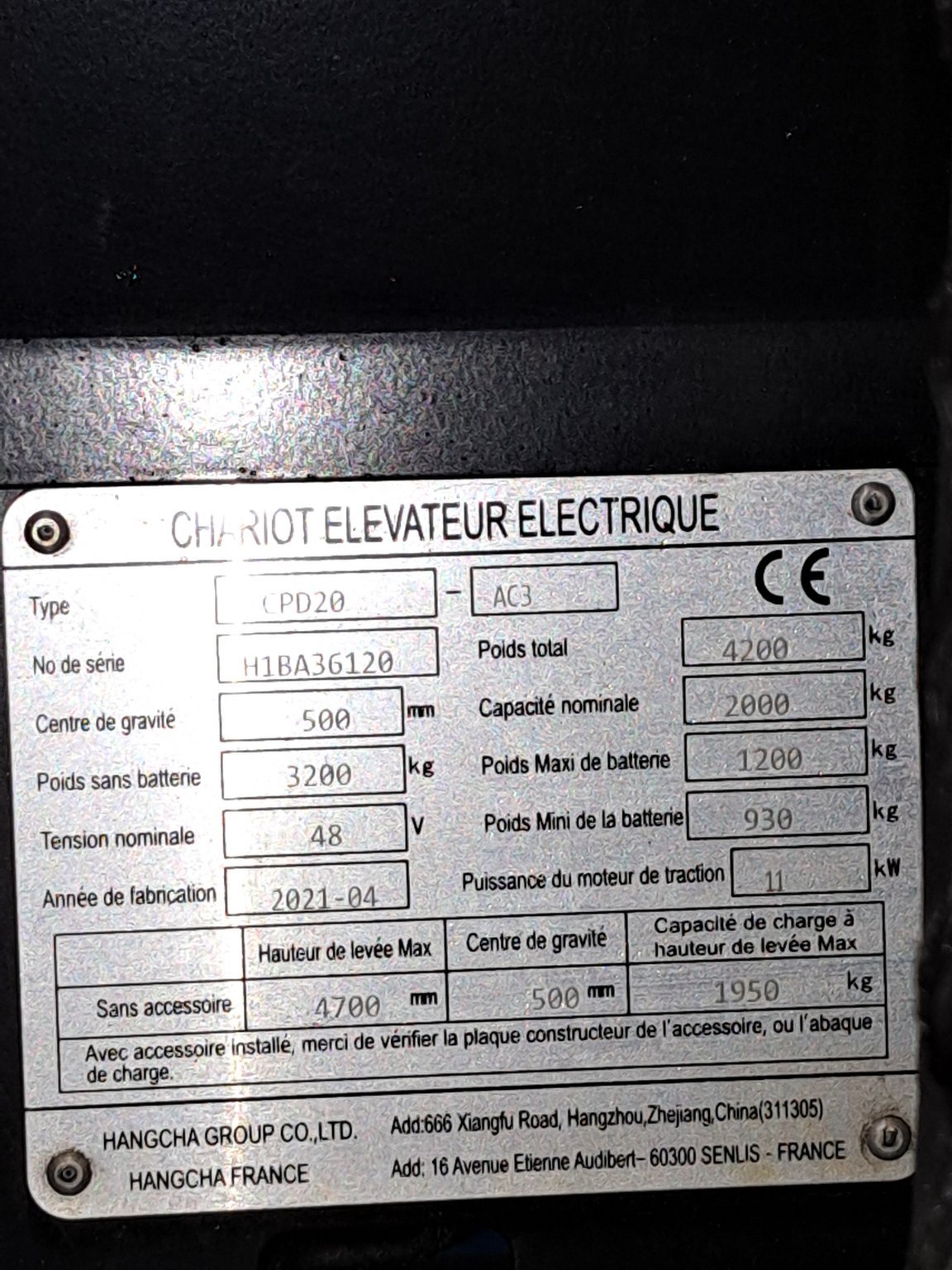 Chariot élévateur frontal Hangcha A4W20