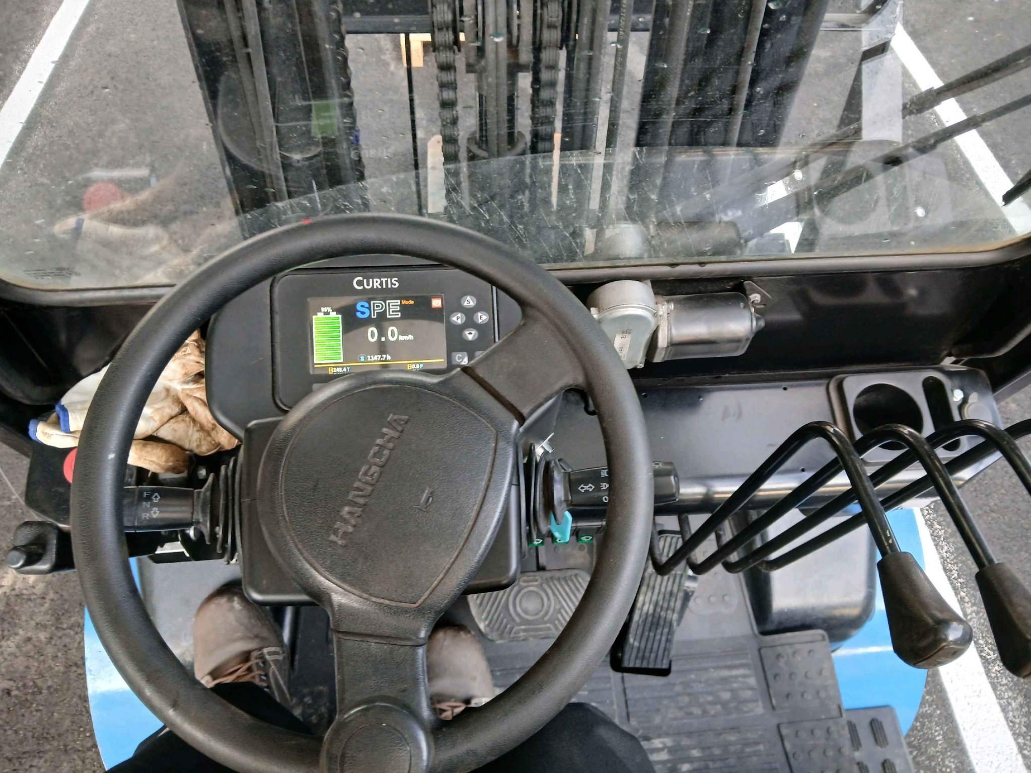 Pare brise avant, Pare brise arrière, 4 voies hydrauliques, Positionneur de fourches, Toit couvert, Feu de travail avant, Feux de travail arrière, Retroviseur panoramique