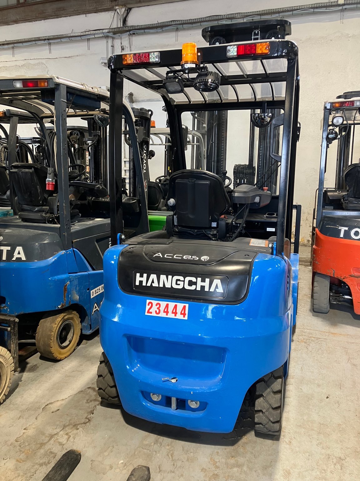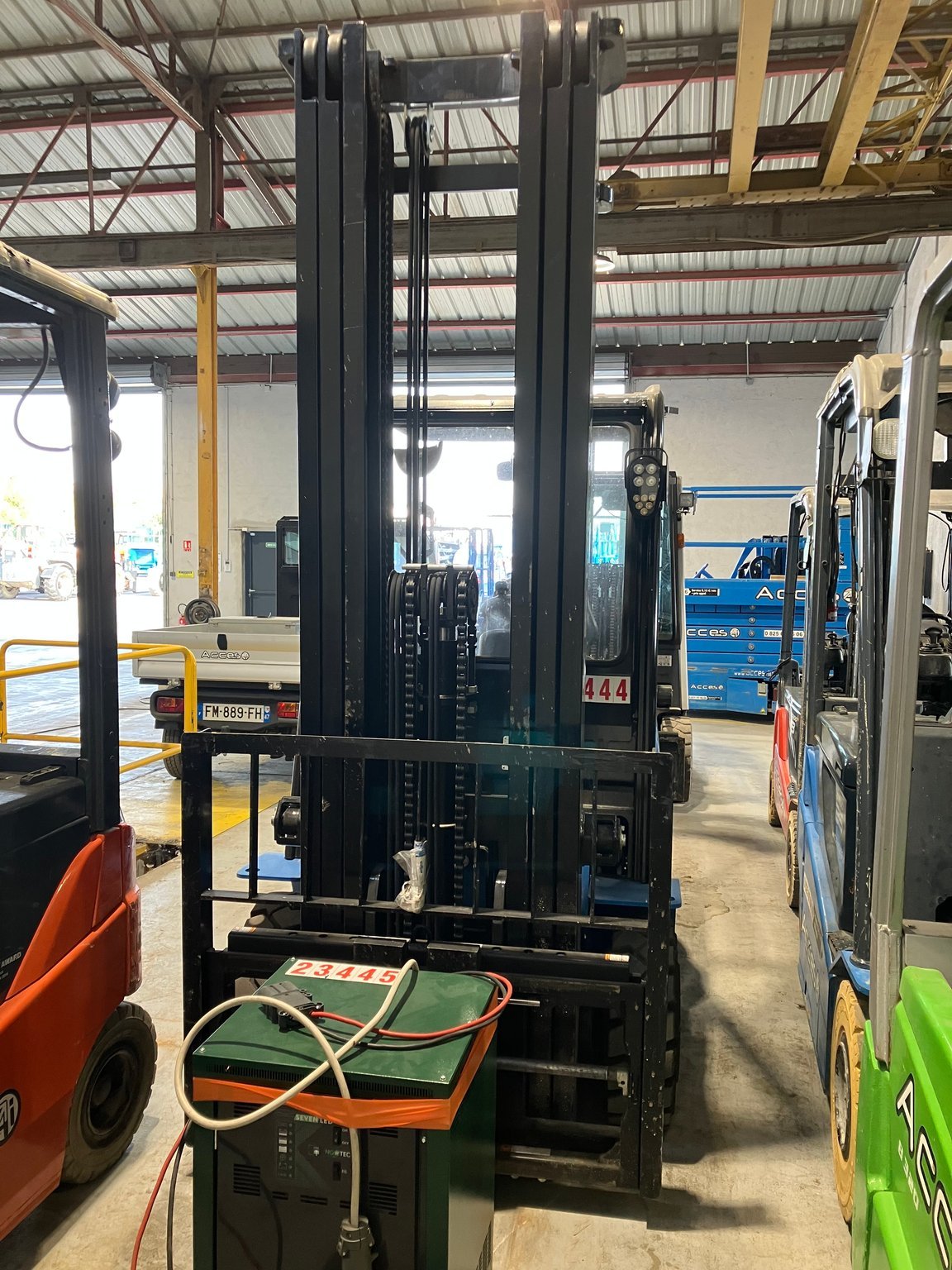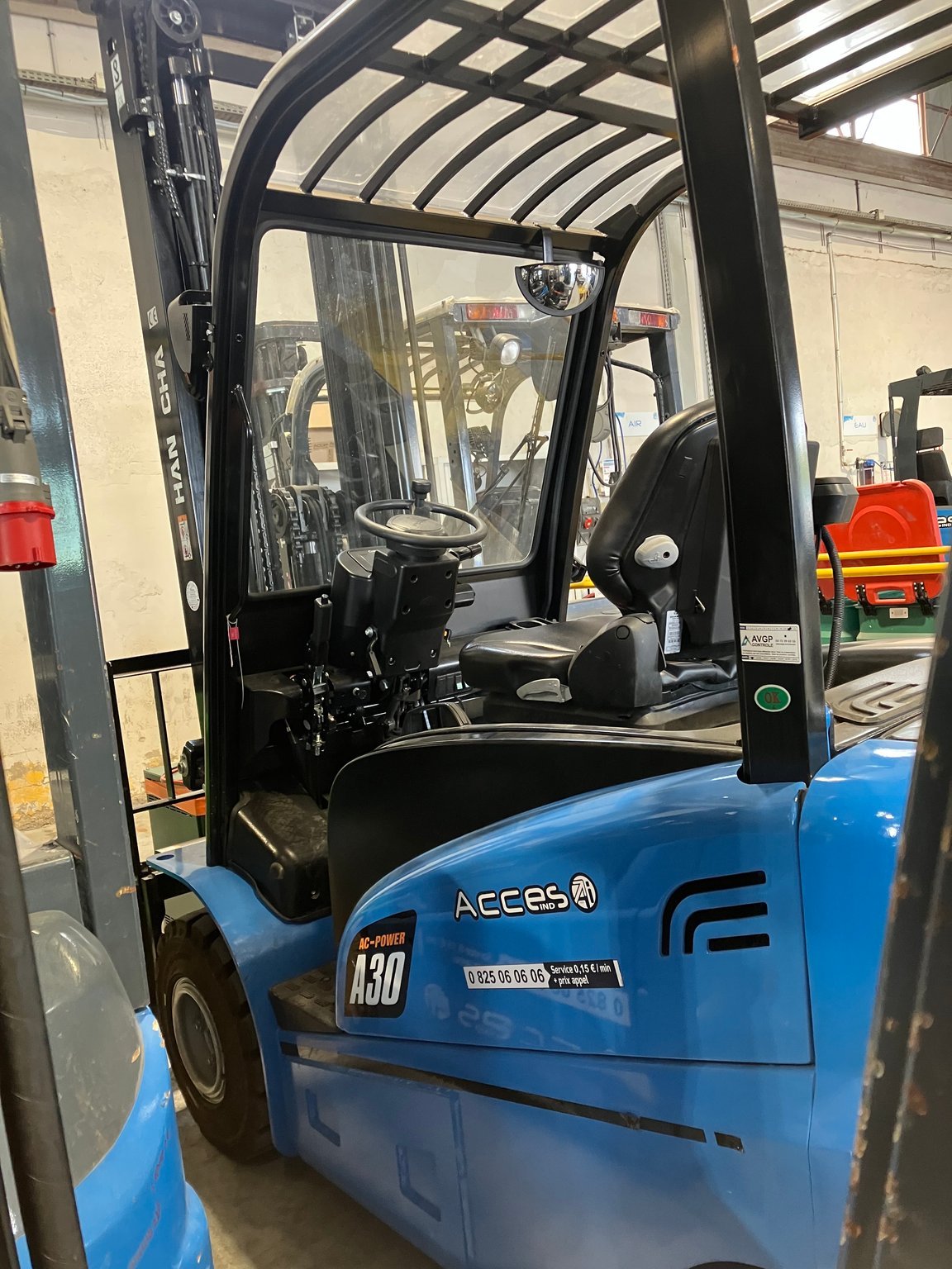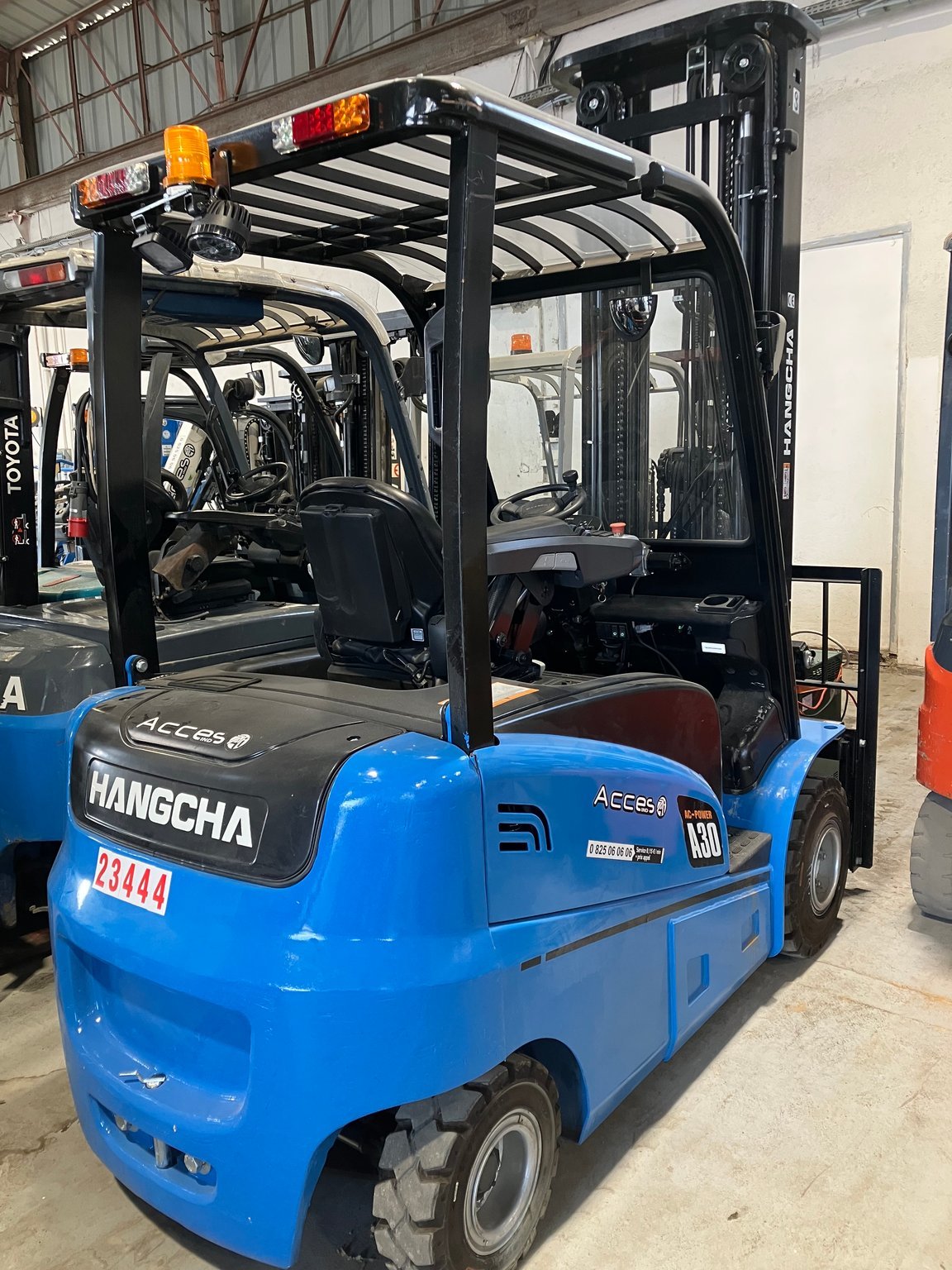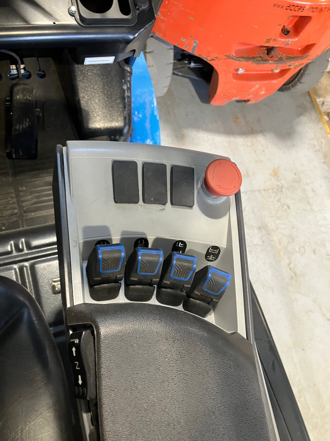 Toit couvert, Pare brise avant, Dosserêt d'appui de charge, 4 voies hydrauliques, Blue spot, Éclairage de route à LED, Blue spot arrière, Feux de travail arrière, Positionneur de fourches