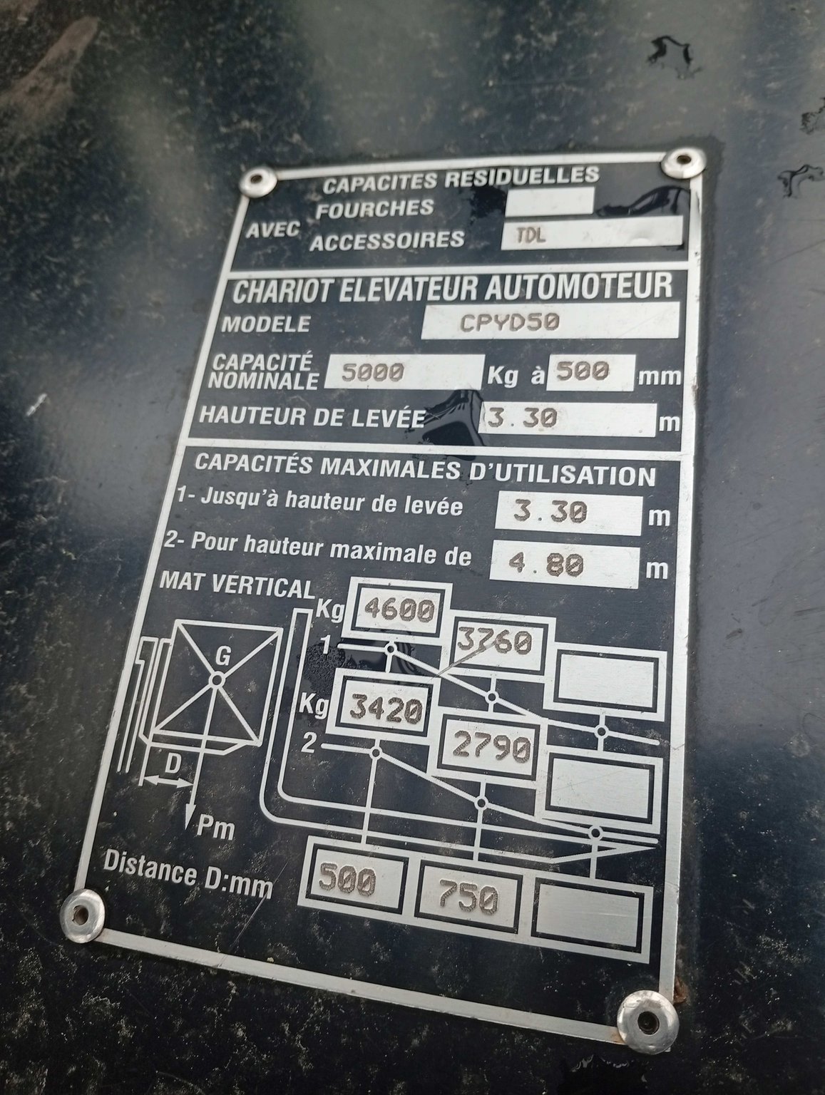 3 voies hydrauliques, Pare brise avant, Pare brise arrière, Dosserêt d'appui de charge, Feu de travail avant, TDL (déplacement latéral)