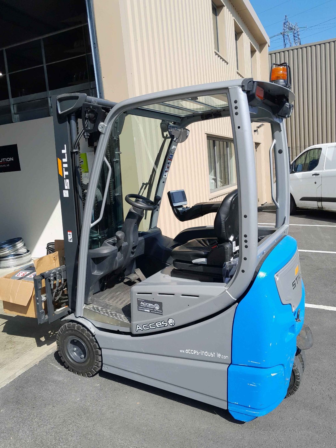 TDL intégré, Positionneur de fourches, Mini levier, Batterie, Chargeur de batterie, Pare brise avant, Cabine, 4 voies hydrauliques, Feu à éclat, Éclairage de route à LED, Toit couvert, Retroviseur panoramique, Blue spot arrière