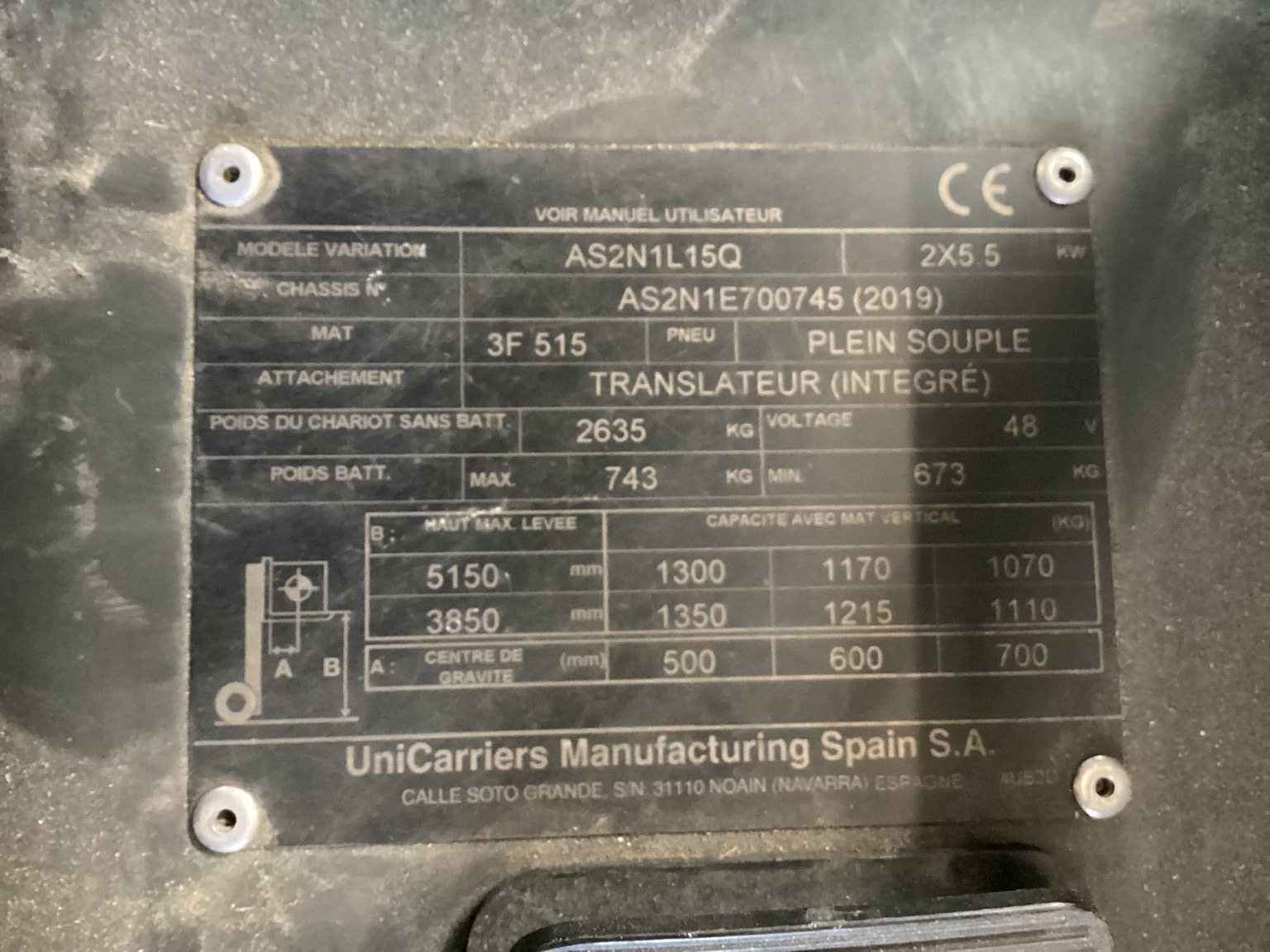 Chariot élévateur frontal UniCarriers AS2N1L15Q