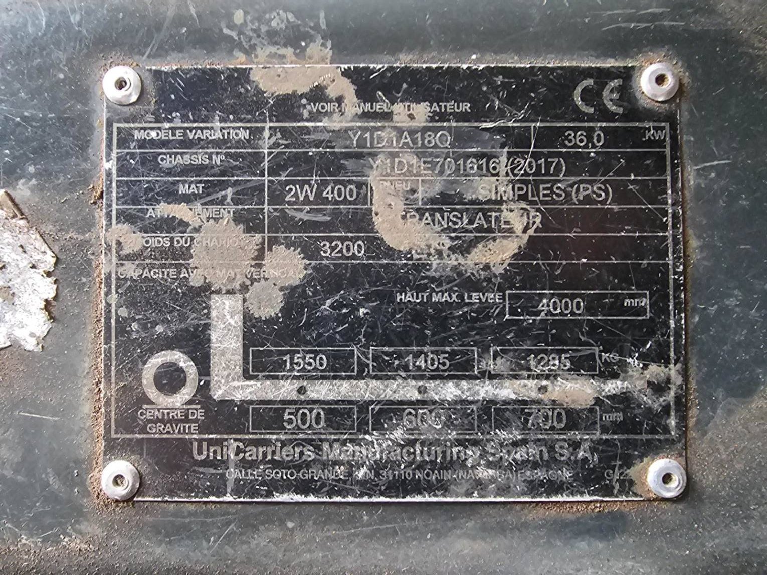 Chariot élévateur frontal UniCarriers DX18D
