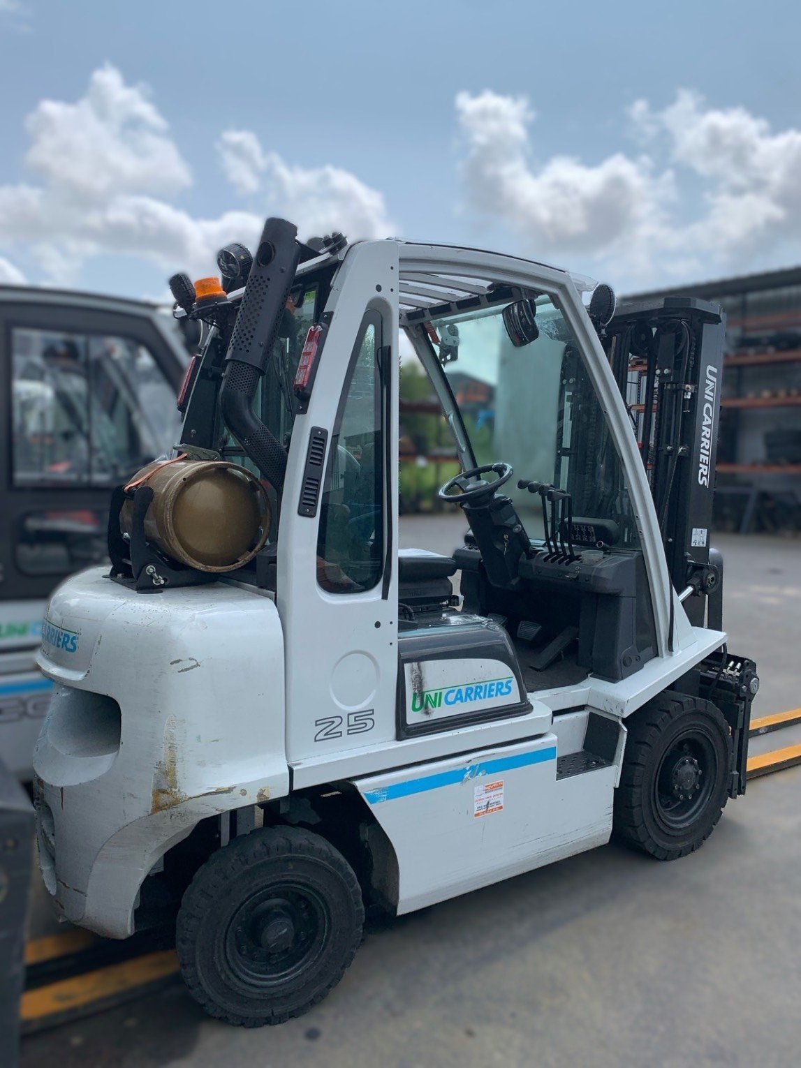 Positionneur de fourches, TDL (déplacement latéral), 4 voies hydrauliques, Pare brise avant, Pare brise arrière, Feu à éclat, Blue spot arrière, Éclairage de route à LED, Retroviseur panoramique