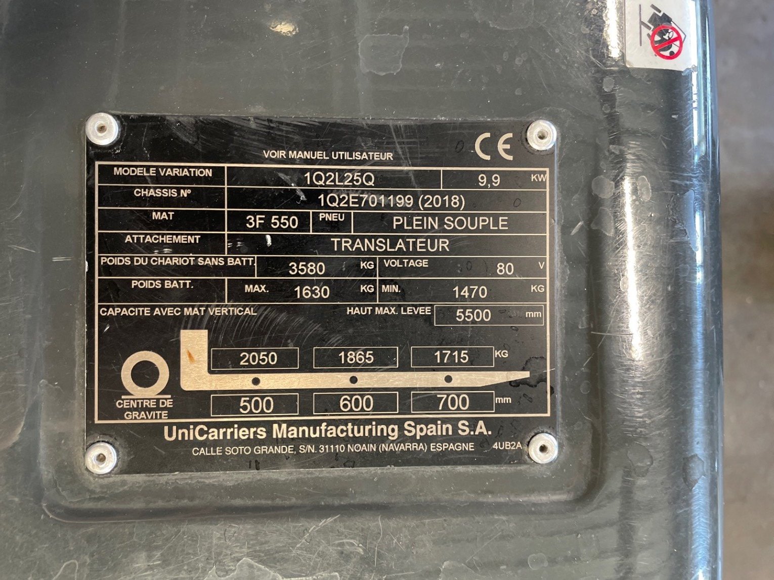 TDL (déplacement latéral), Dosserêt d'appui de charge, 3 voies hydrauliques, Batterie, Chargeur de batterie, Éclairage route, Retroviseur panoramique, Feu à éclat, Feux de travail arrière