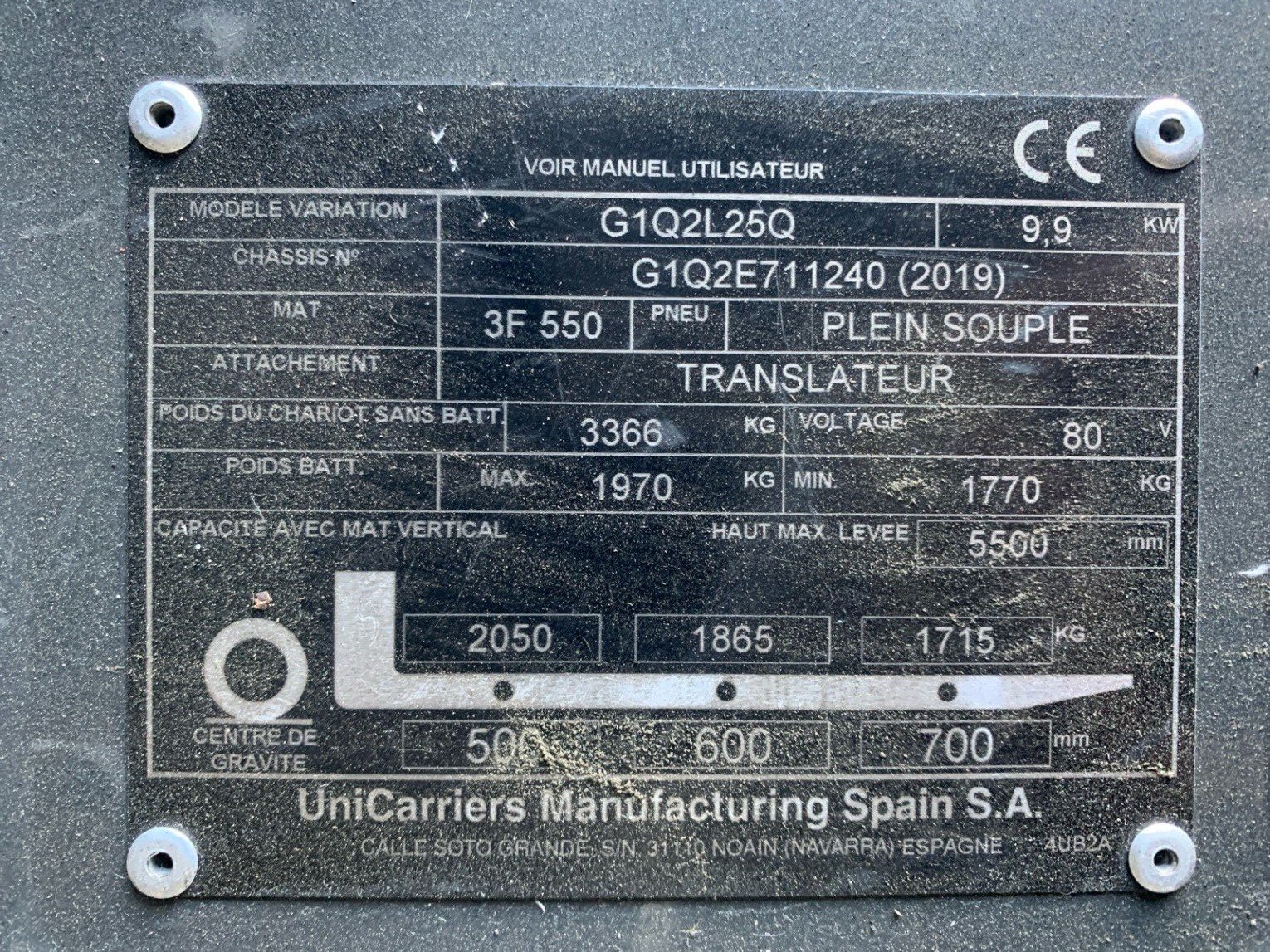 TDL (déplacement latéral), 4 voies hydrauliques, Dosserêt d'appui de charge, Mini levier, Chargeur de batterie, Batterie, Éclairage route, Retroviseur panoramique