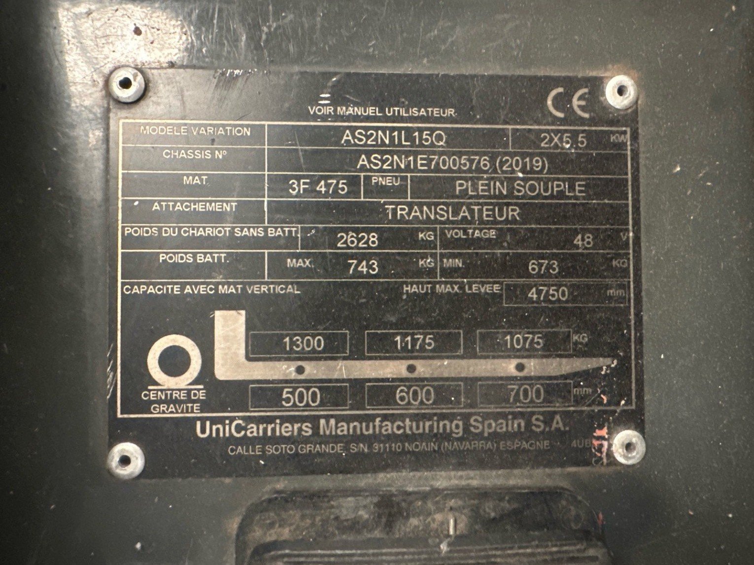 Chariot élévateur frontal UniCarriers TX3-15C