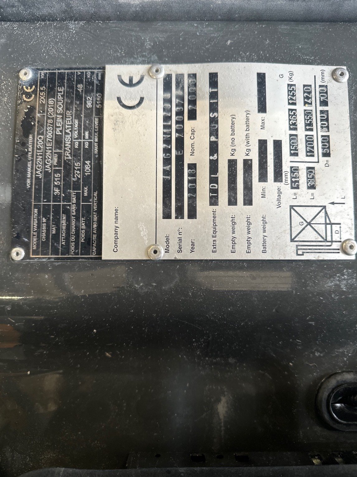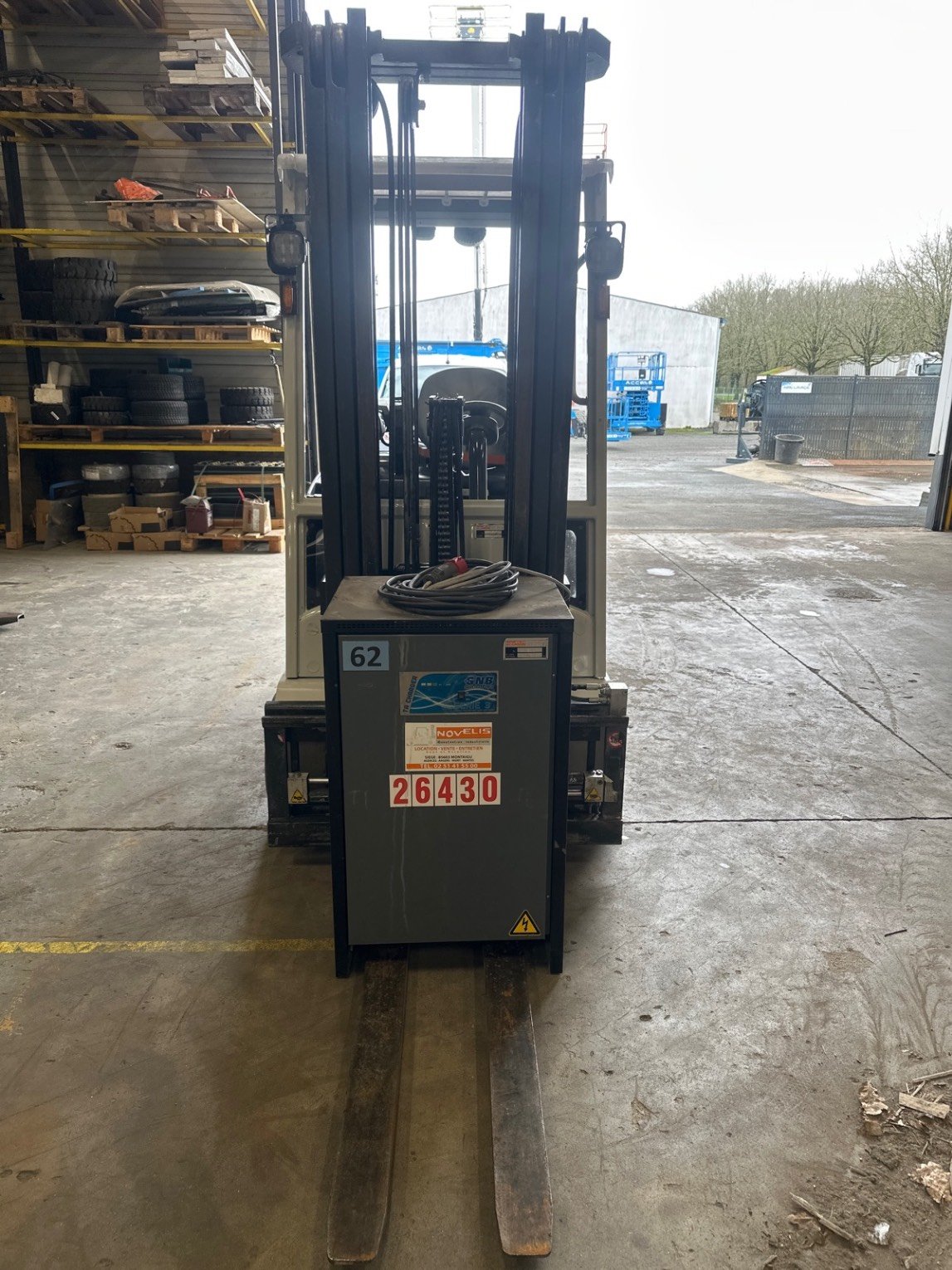 TDL (déplacement latéral), Positionneur de fourches, 4 voies hydrauliques, Mini levier, Éclairage route, Batterie, Chargeur de batterie, Feu à éclat, Toit couvert, Retroviseur panoramique
